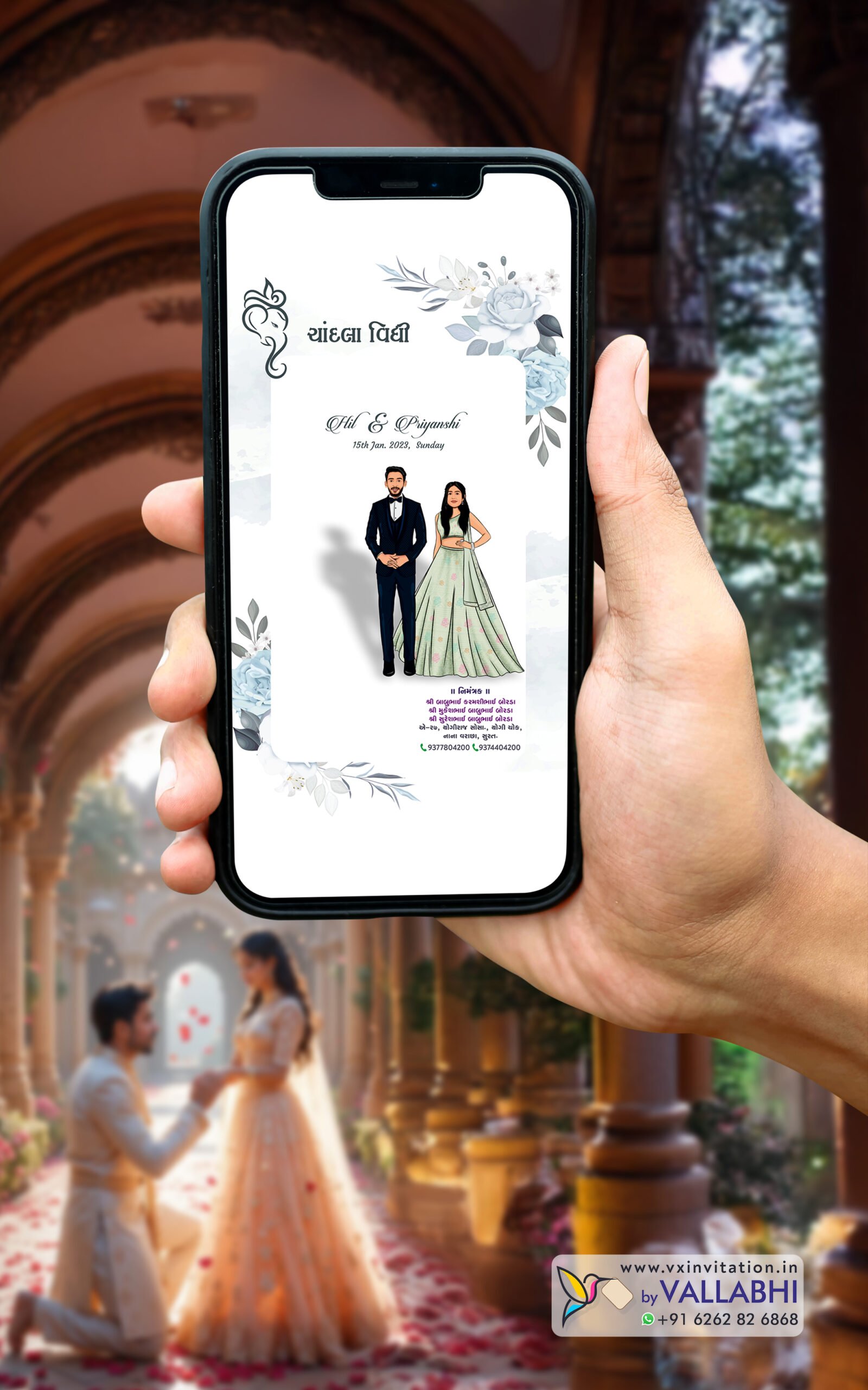 Add a fun, elegant twist to your engagement invite with Vallabhi’s Engagement Digital Invitation — featuring clickable location, click-to-call contacts, premium fonts, and the latest minimalist floral layout for a classy and memorable experience.