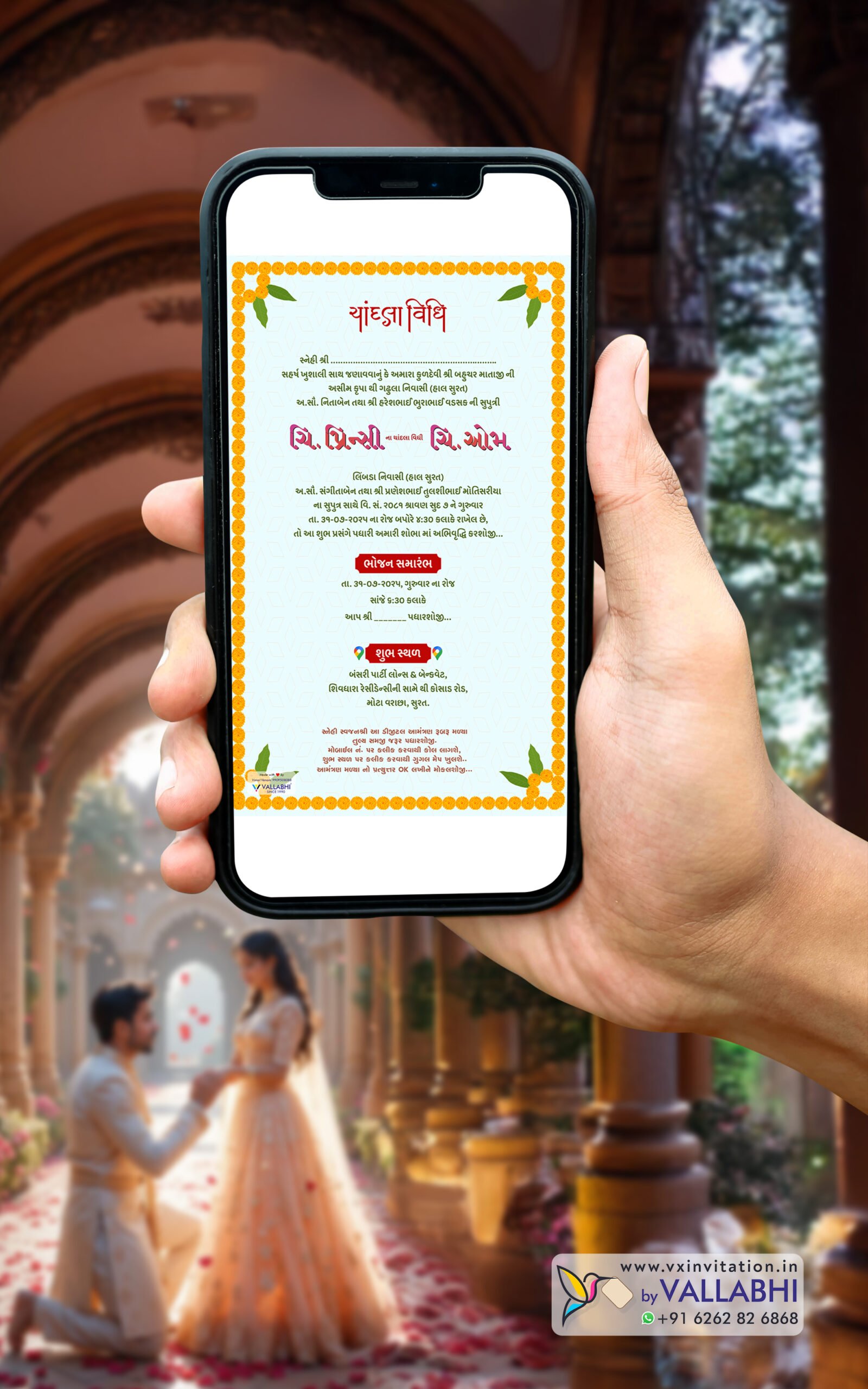 Celebrate your engagement the traditional way with Vallabhi’s Marigold Theme Digital Invitation.