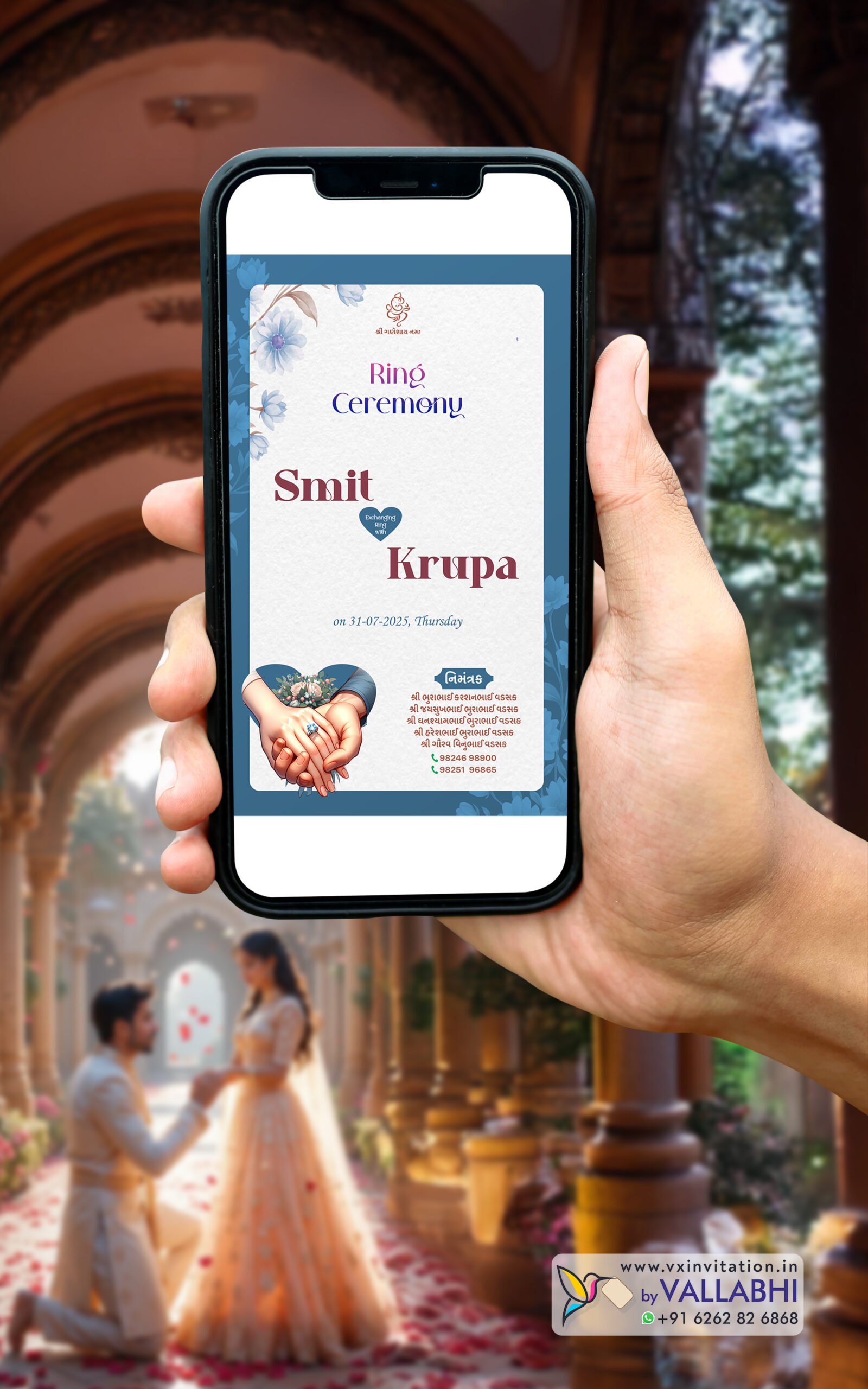 💍 Elegant Blue Bloom Ring Ceremony Digital Invitation | D. No. RCG-1045