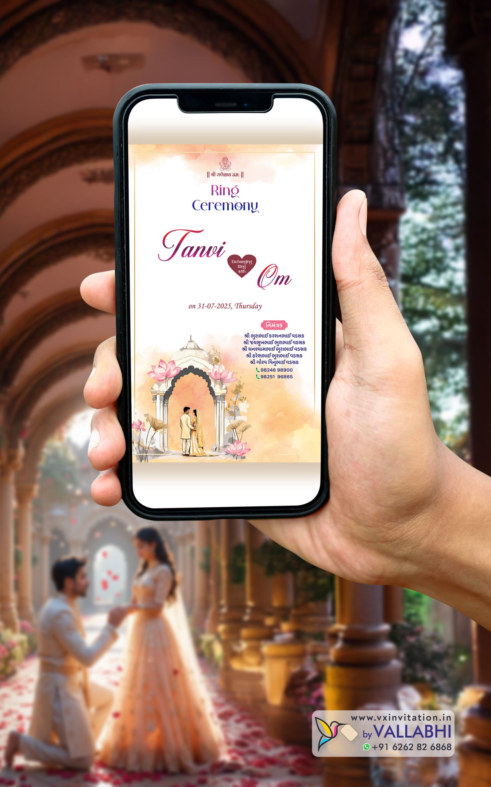 💍 Watercolor Lotus Arch Ring Ceremony Digital Invitation | D. No. RCG-1051