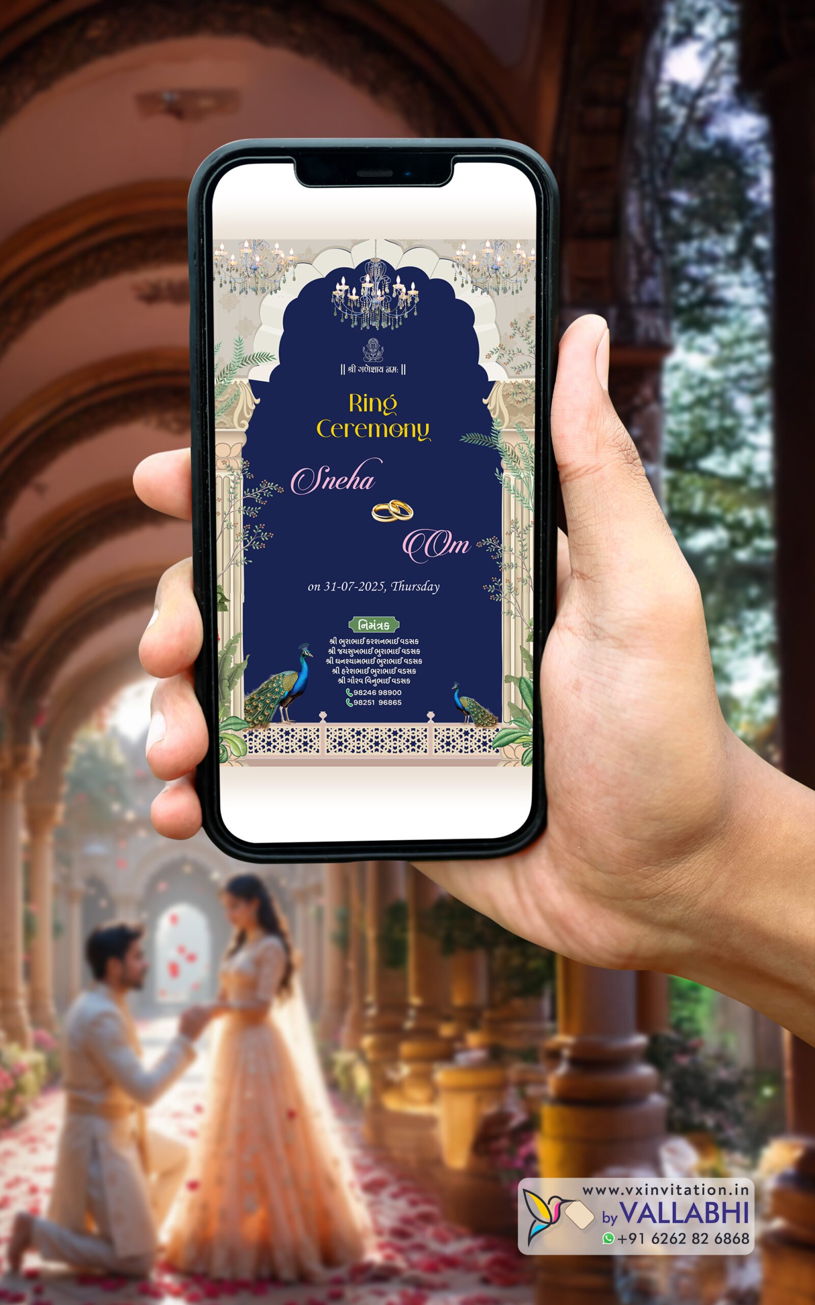 💍 Royal Blue Palace Theme Ring Ceremony Digital Invitation | D. No. RCG-1072