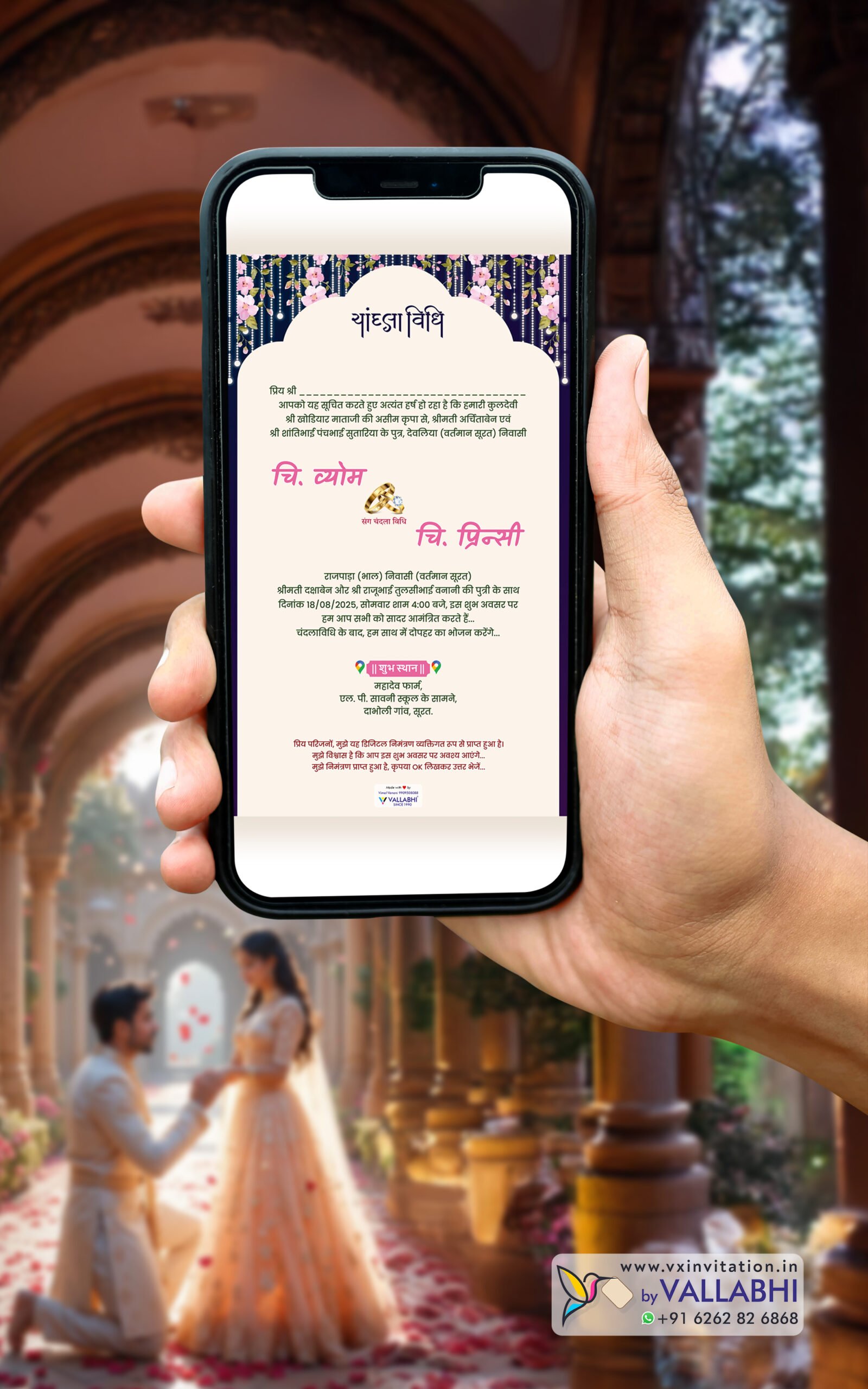 Perfectly blending romance and luxury, this digital card includes clickable location, click-to-call mobile number, premium fonts, and a latest contemporary design that looks stunning on every screen.